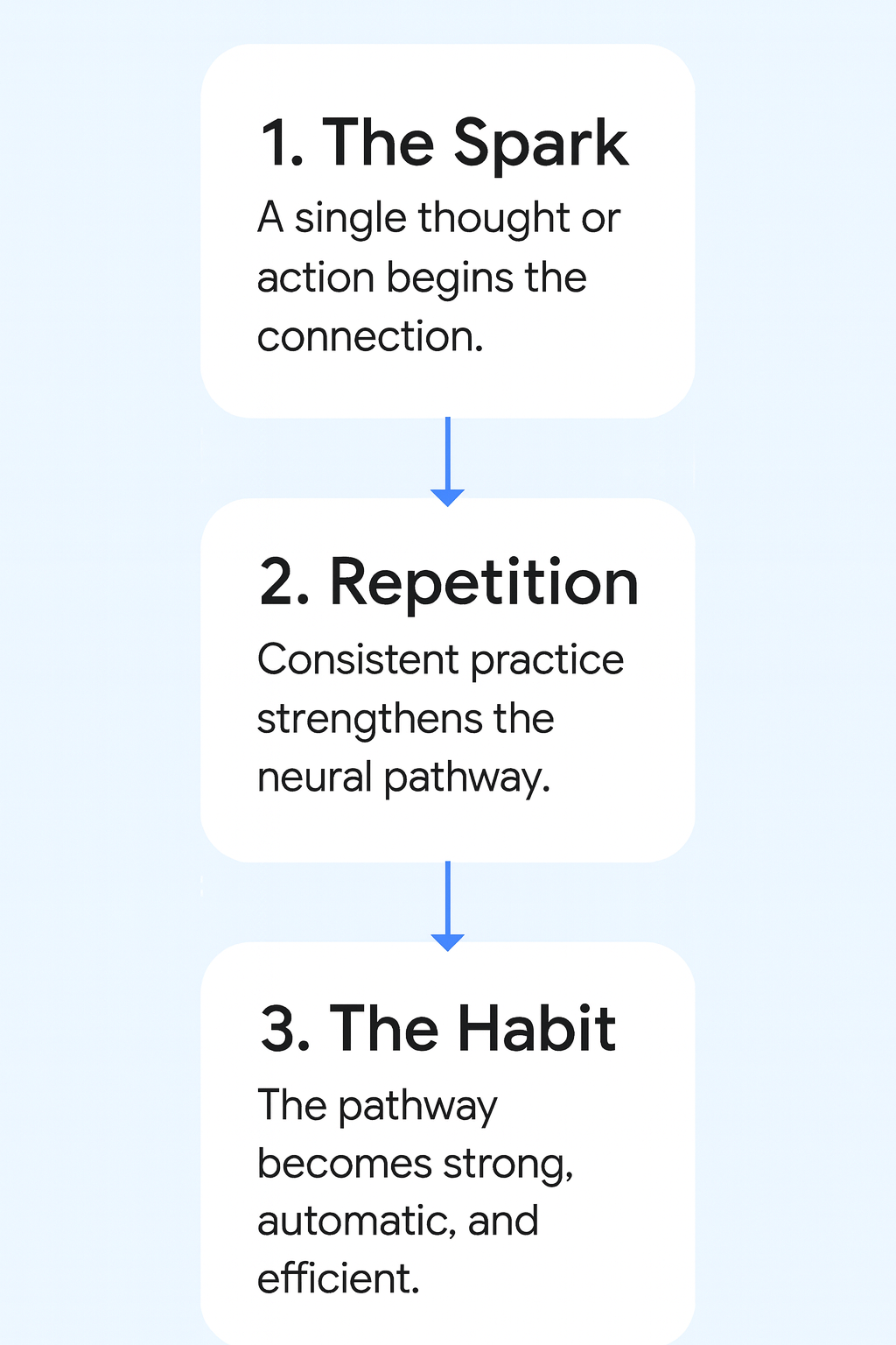 It’s a simple way of explaining neuroplasticity — your brain’s ability to rewire itself based on what you repeatedly do and think.