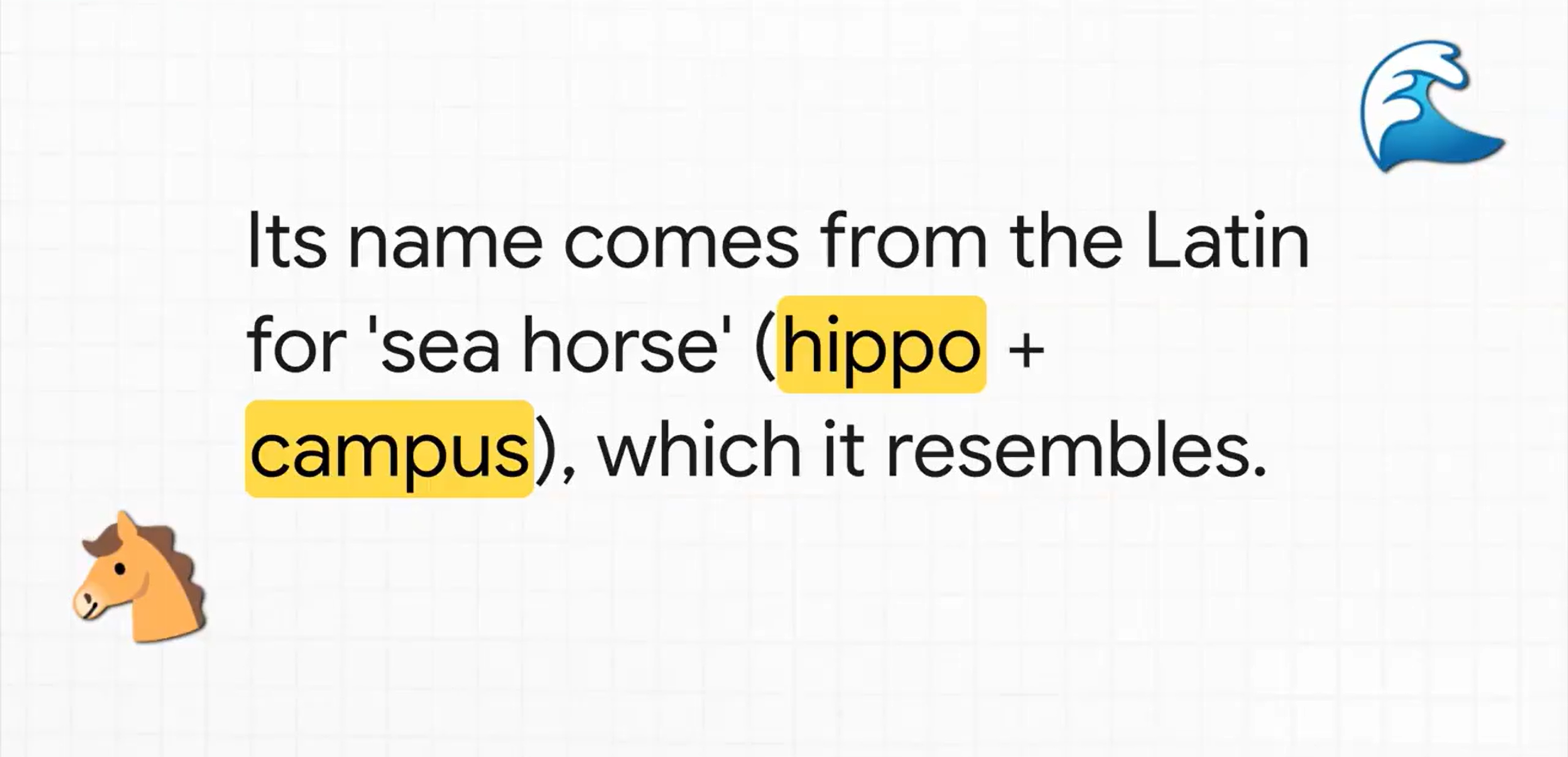 The first anatomists who saw it thought its curved shape looked like a tiny seahorse — and the name stuck. “Hippo” means horse and “campus” means sea monster in Greek. So yes, your brain literally has a seahorse inside it!