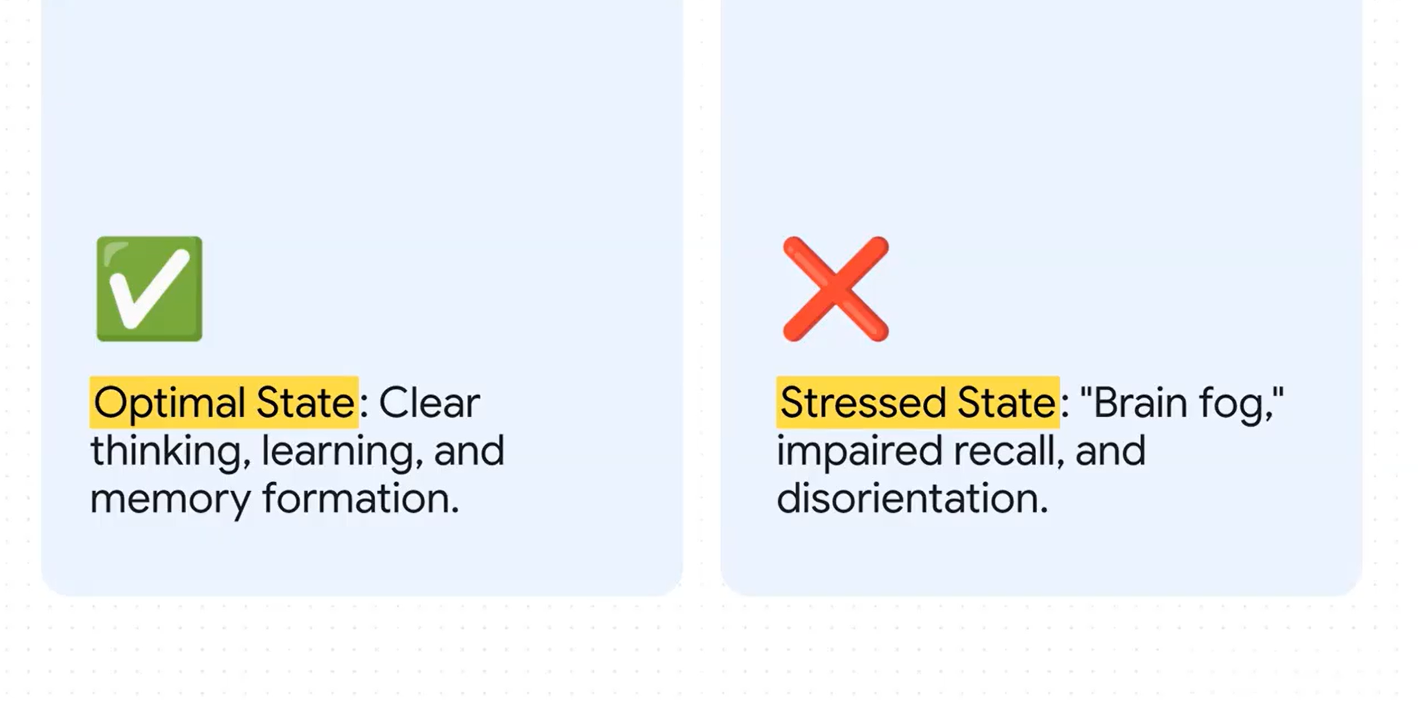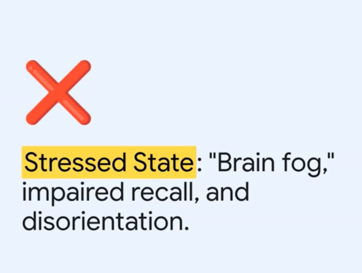 You can feel the difference immediately: when you’re calm, you can think clearly and remember things easily. But when cortisol floods your brain, your hippocampus starts to shut down — that’s when memory gets fuzzy, focus slips, and even simple navigation feels difficult.