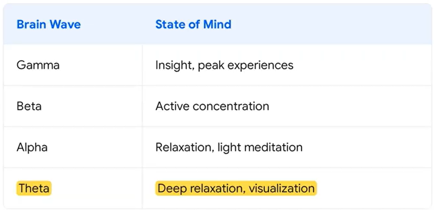 In the theta state, your hippocampus does its best work: processing experiences from the day and filing them away into long-term memory. It’s the brain’s prime time for learning and integration.